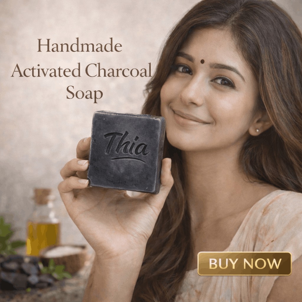 🌿 Thia Naturals Premium Handmade Activated Charcoal Soap (100gm)